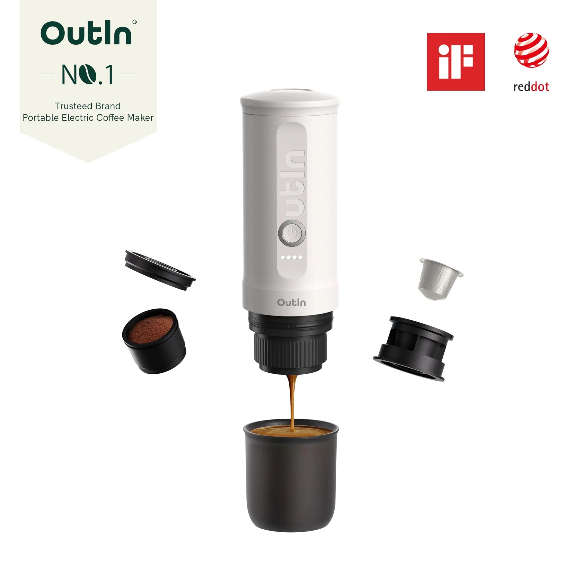 - 1 × OutIn Nano Portable Electric Espresso Maker (Pearl White)