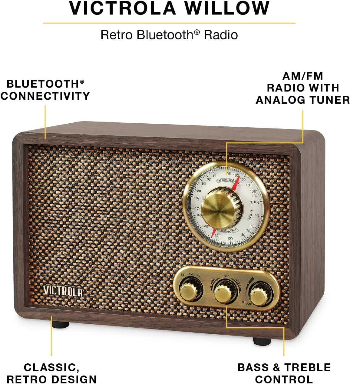 Victrola Willow Retro Wood Bluetooth Radio – Vintage Style AM/FM & Wireless Streaming